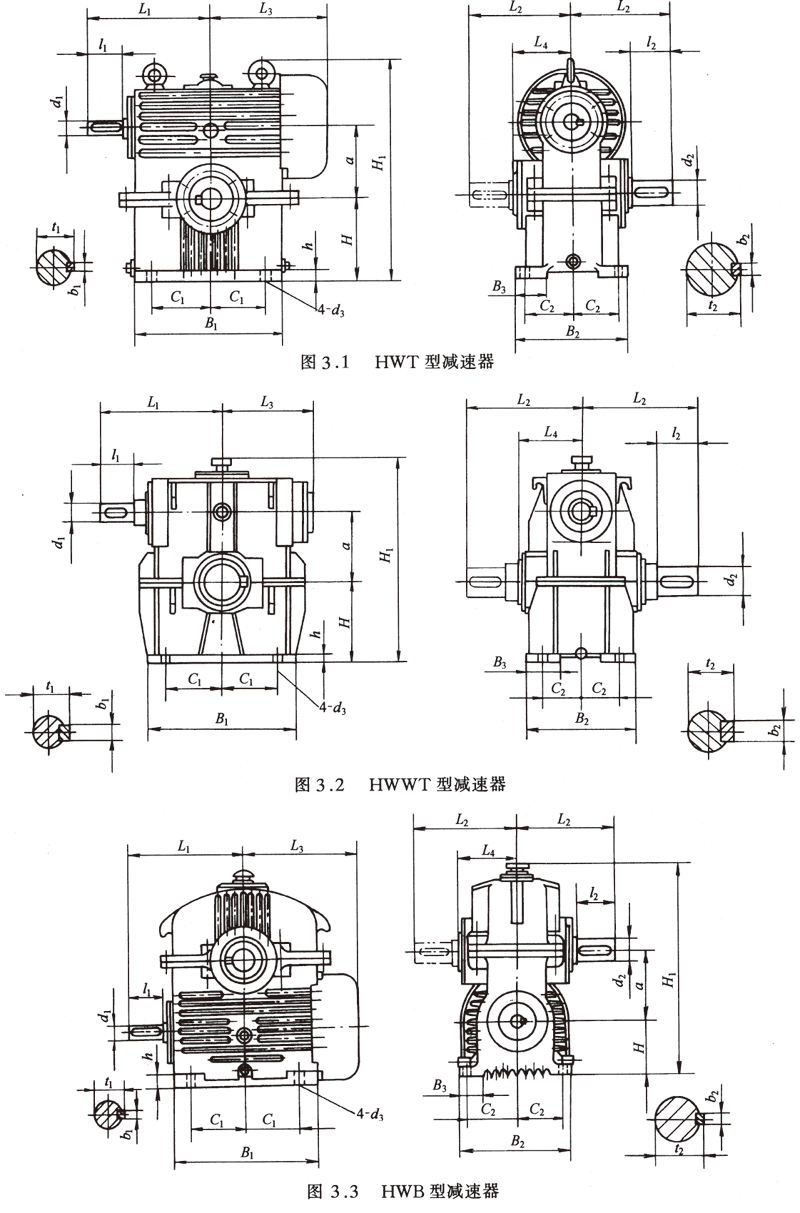 (3)HWB型—蜗杆在蜗轮之下铸造机体和机盖直廓环面蜗杆减速器;