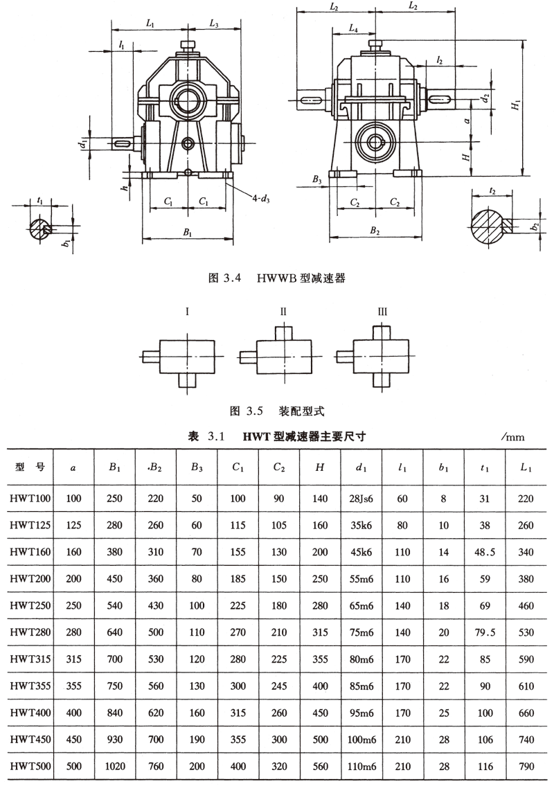 (3)HWB型—蜗杆在蜗轮之下铸造机体和机盖直廓环面蜗杆减速器;