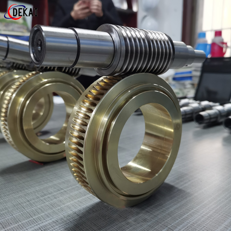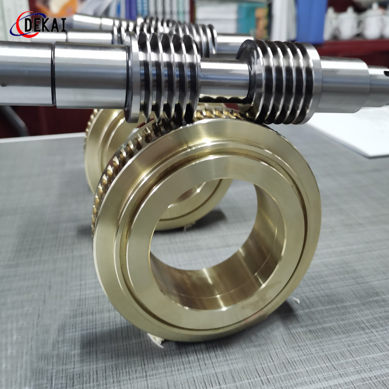 分度精度高,侧隙可调整至0.01~0.03Mmm;齿面接触稳,不会改变中心距。调整标准,方便可靠。装配灵活,装配时,用调整环来获得合适的啮合侧隙。使用中如果因为磨损导致传动间隙增大,只要调整一下蜗杆的轴向位置,可以使蜗杆蜗轮传动副恢复到原来的精度,不需要更换新的蜗杆,蜗轮,比较实用。蜗杆材质采用40Cr,42CrMo、38CrMoAl合金钢。蜗杆采用锡青铜ZCuSn10Pb1离心浇铸,具有高强度耐磨性。
