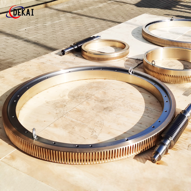 精密双导程蜗杆副的优点:分度精度高,侧隙可调整至0.01~0.03Mmm;齿面接触稳,不会改变中心距。调整标准,方便可靠。装配灵活,装配时,用调整环来获得合适的啮合侧隙。使用中如果因为磨损导致传动间隙增大,只要调整一下蜗杆的轴向位置,可以使蜗杆蜗轮传动副恢复到原来的精度,不需要更换新的蜗杆,蜗轮,比较实用。蜗杆材质采用40Cr,42CrMo、38CrMoAl合金钢。蜗杆采用锡青铜ZCuSn10Pb1离心浇铸,具有高强度耐磨性。